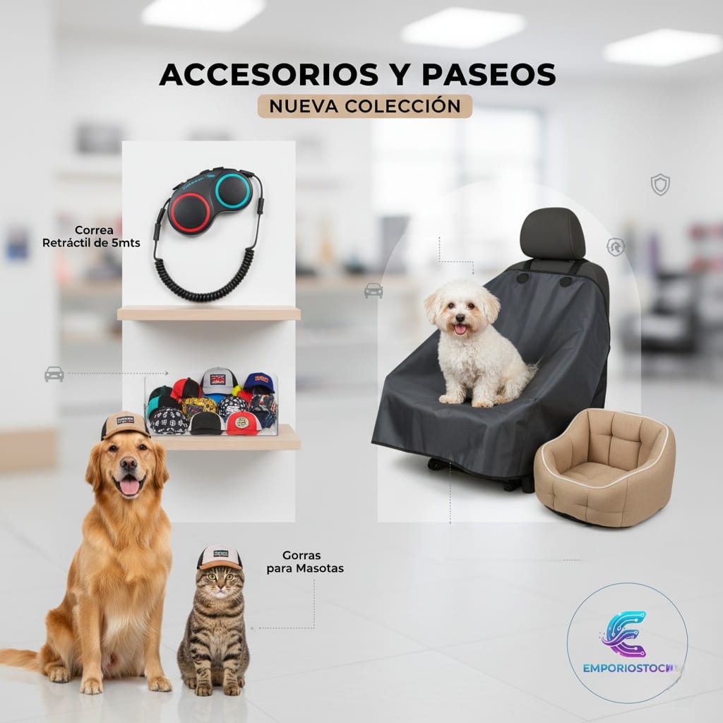 Descubre accesorios diseñados para proteger, confortar y acompañar a tu mascota en cada aventura. Correas inteligentes que se adaptan a su ritmo, asientos de auto que garantizan su seguridad, y detalles únicos que hacen de cada salida un momento especial. Porque tu compañero merece lo mejor, siempre.